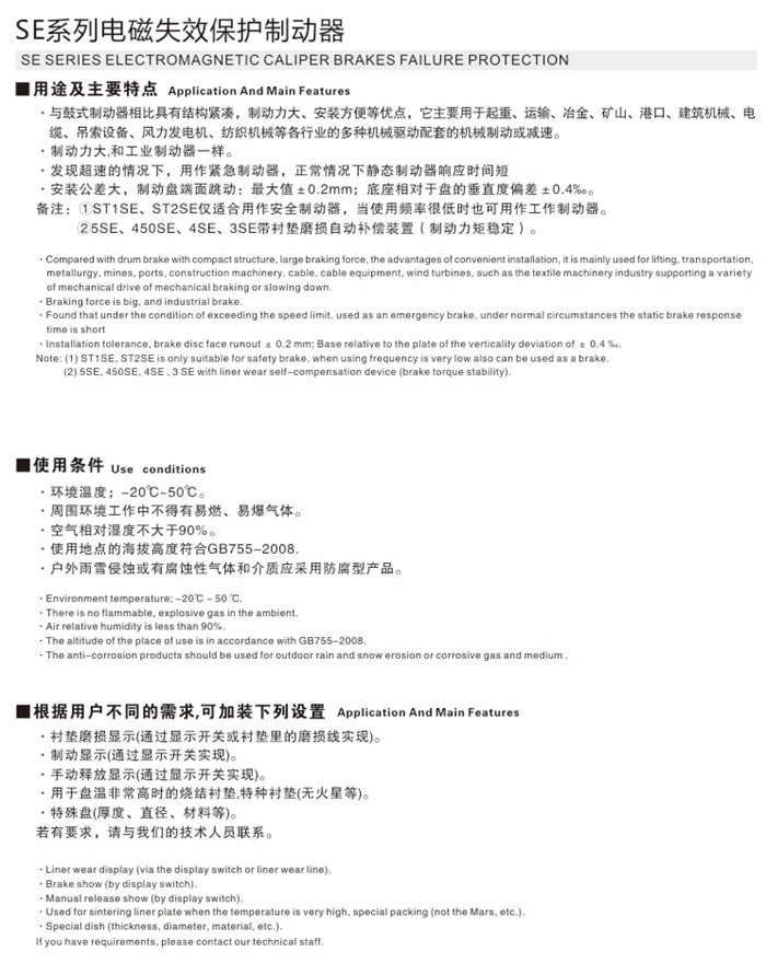 SE系列電磁失效保護(hù)制動器